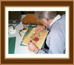 Dave has recently written an article for this web site encompassing the difficult subject of mitres and stringers and borders. Generally those parts of the marquetry art are the subjects most practitioners of the craft find most awkward (along with the varnishing side of marquetry) but Dave, with his unique way of teaching marquetry, has made the whole process seem very easy to comprehend. So it's a job well done there Dave, thanks from all of us for your wonderfully informative tutorial. By the way, Dave has won loads of awards for his marquetry pictures at the Marquetry Society's National Exhibitions over the last several years. Excellent work there Dave!. |
